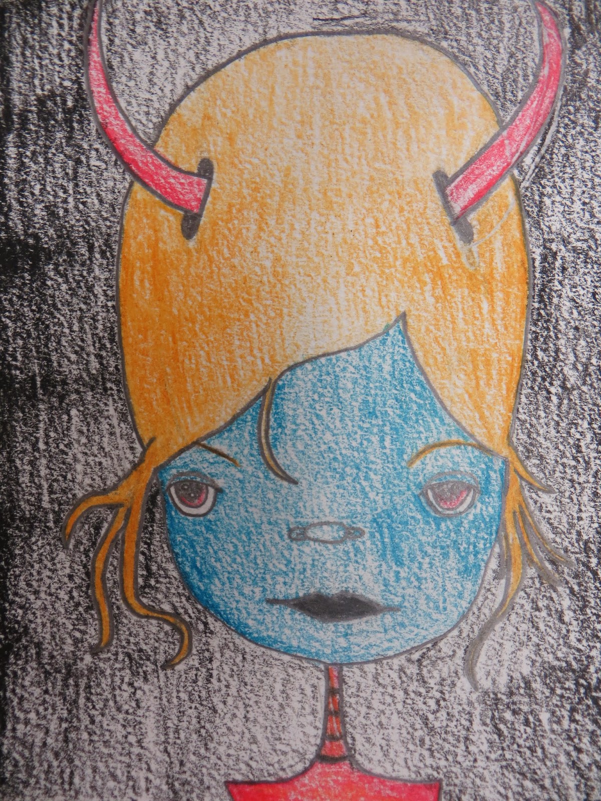 They had to complete four (these are in progress). They were to be any mixture of pencil, colored pencil, sharpie, and watercolor. Tilt your head...